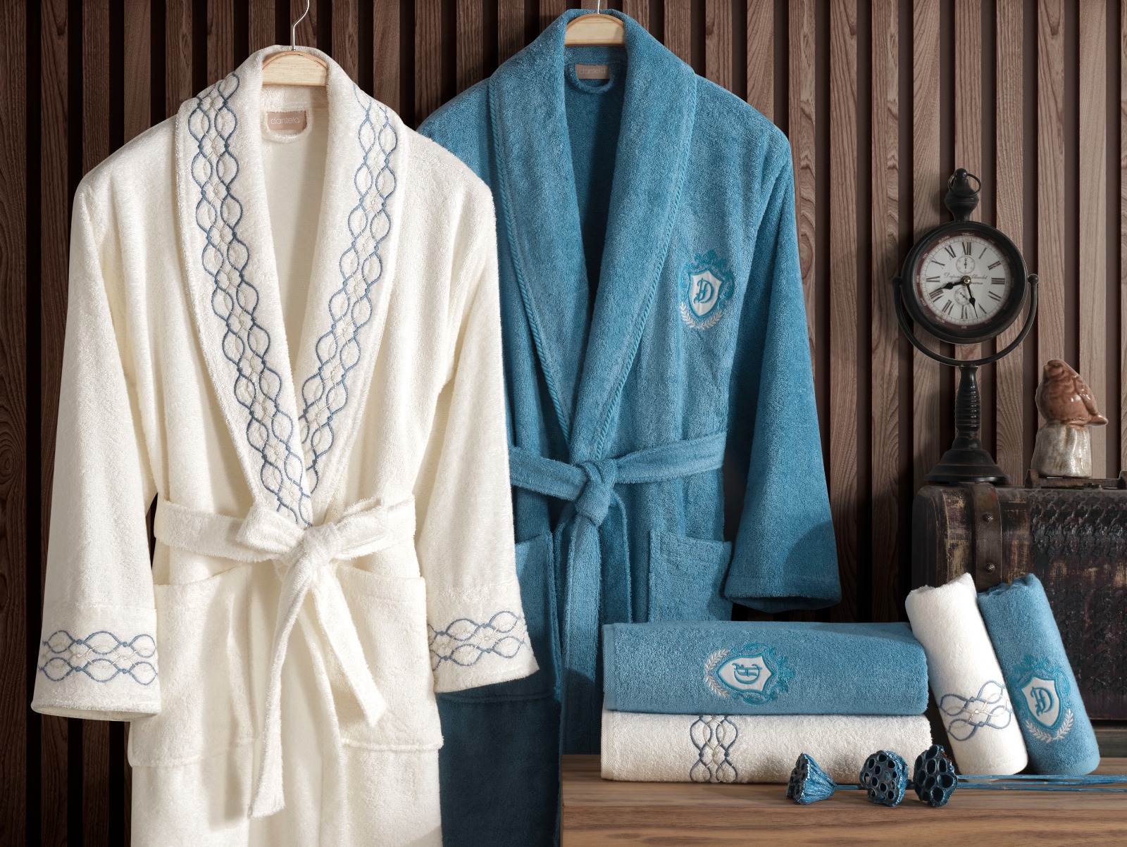 Ürün içeriği; 1 kadın bornoz S/M beden, 1 erkek bornoz M/L beden, 2 adet 85*150cm banyo havlusu, 2 adet 50*90 baş havlusu.