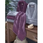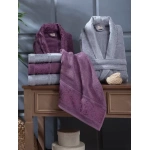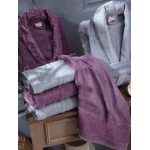 Esra Gri-Mürdüm Jakarlı %100 Pamuklu Aile Bornoz Seti