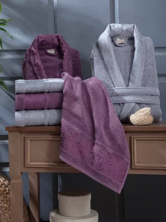 Be the first to review “Esra Gri-Mürdüm Jakarlı %100 Pamuklu Aile Bornoz Seti” Yanıtı iptal et