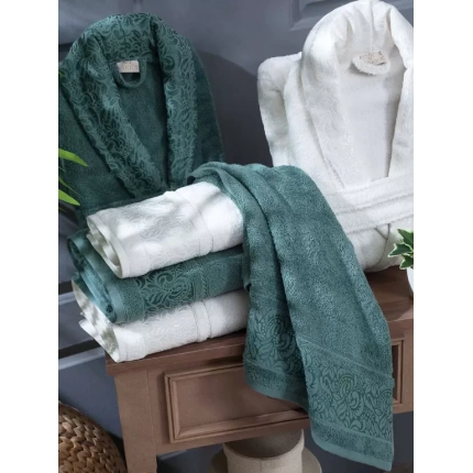 Esra Zümrüt-Krem Jakarlı %100 Pamuklu Aile Bornoz Seti 2,499.99₺ 1,999.99₺
