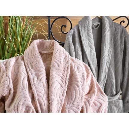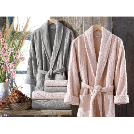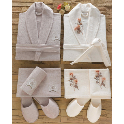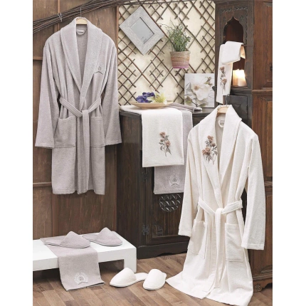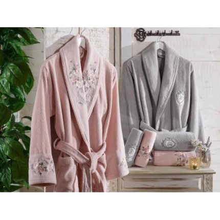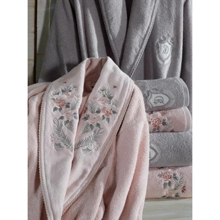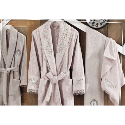 Larosa Pudra-Gri Pamuklu Çeyizlik Aile Bornoz Takımı