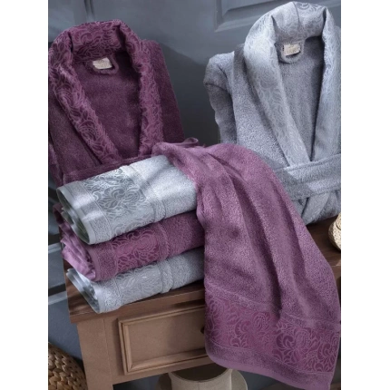 Esra Gri-Mürdüm Jakarlı %100 Pamuklu Aile Bornoz Seti 2,499.99₺ 1,999.99₺