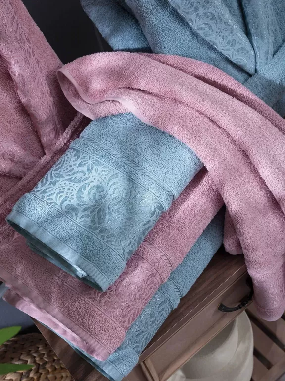 Home Bornoz ve Aile Setleri Aile Bornoz Takımı Esra Petrol-Pembe Jakarlı %100 Pamuklu Aile Bornoz Seti